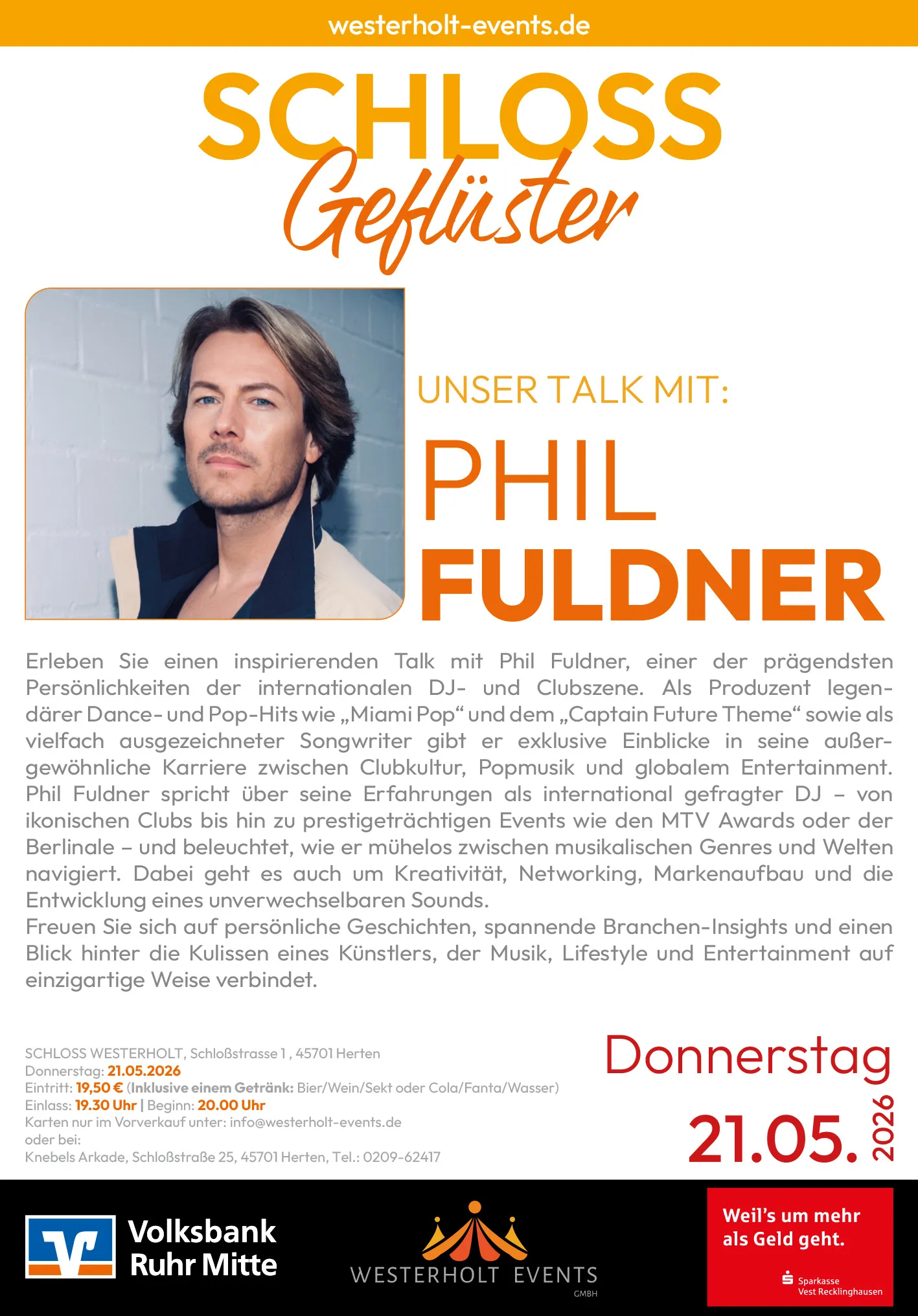 AUSGEZEICHNET Basierend auf 4 Bewertungen Gepostet auf Sandra EckelhoffTrustindex überprüft, ob die Originalquelle der Bewertung Google ist. Tolles, fantastisches Konzert der Florians in der Schlosskapelle Westerholt. Wunderschöne Atmosphäre und hervorragend, mit viel Liebe, organisiert von der Westerholt Events GmbH. Ich freue mich auf ein nächstes Mal.Gepostet auf Beate UrlichTrustindex überprüft, ob die Originalquelle der Bewertung Google ist. Wunderbares Konzert der Florians gestern, in der einzigartigen Atmosphäre der Schloßkapelle Westerholt. Sehr gute Organisation der Westerholt Events GmbH. Vielen Dank für dieses tolle Erlebnis.Gepostet auf Stefan LangenbrinkTrustindex überprüft, ob die Originalquelle der Bewertung Google ist. Hallo Waren gestern in der alten Kapelle bei dem Konzert von den Florians 😍 Es war ein wunderschöner Abend eine beeindruckende Atmosphäre und Mega organisiert 🙏🏼 es ist absolut sehenswert .Das sollte jeder mal erlebt haben! Vielen Dank für ein unvergessliches Erlebnis Glück auf Stefan und KorinaGepostet auf Fabian BüttnerTrustindex überprüft, ob die Originalquelle der Bewertung Google ist. Ein absolut unvergesslicher Abend! The Florians haben die Schlosskapelle in Westerholt in einen magischen Konzertsaal verwandelt – die Kombination aus der historischen Location und der Musik war einfach unschlagbar. Die Atmosphäre war von der ersten bis zur letzten Note außergewöhnlich. Auch die Westerholt Events GmbH hat ganze Arbeit geleistet: Der Abend war bestens organisiert, der Ablauf reibungslos und man hat gemerkt, dass hier mit viel Liebe zum Detail geplant wurde. Wer die Möglichkeit hat, eine Veranstaltung in der Schlosskapelle zu erleben – unbedingt hingehen. Ich freue mich jetzt schon auf das nächste Konzert!