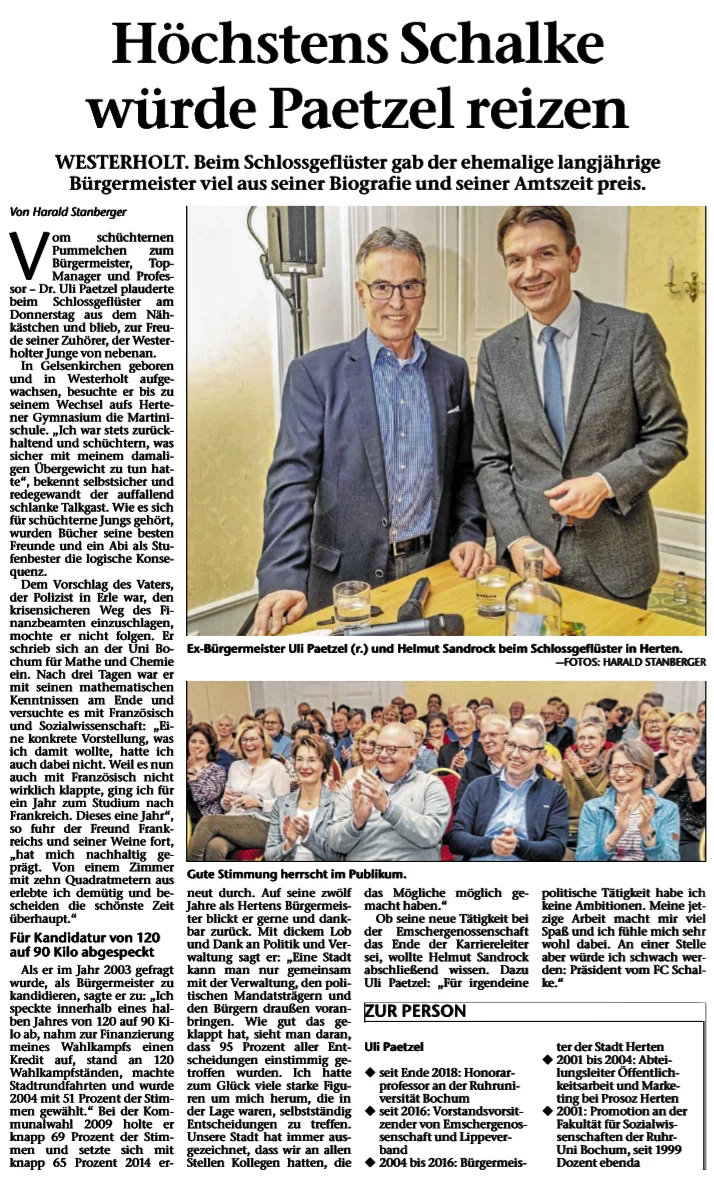 Beim Schlossgeflüster gab der ehemalige langjährige Bürgermeister viel aus seiner Biografie und seiner Amtszeit preis.